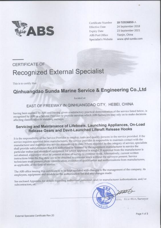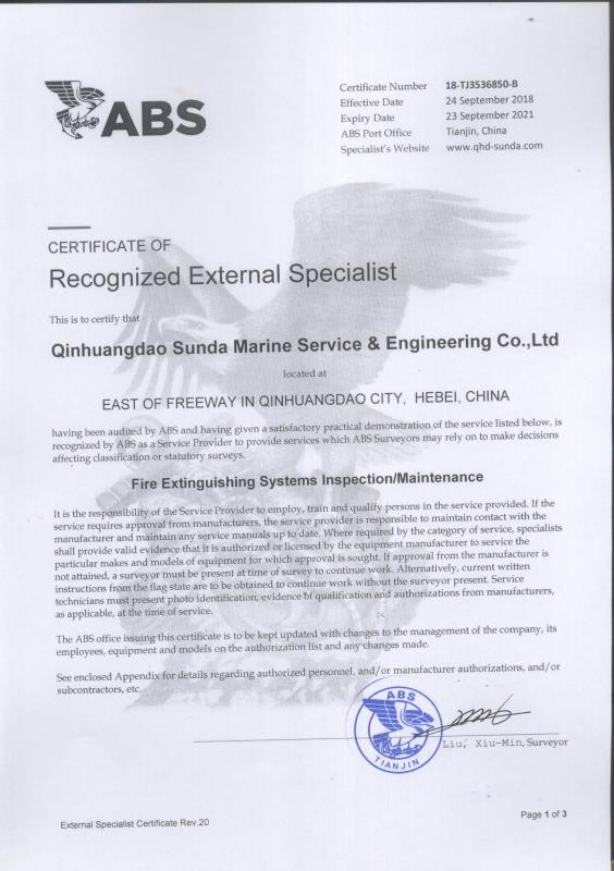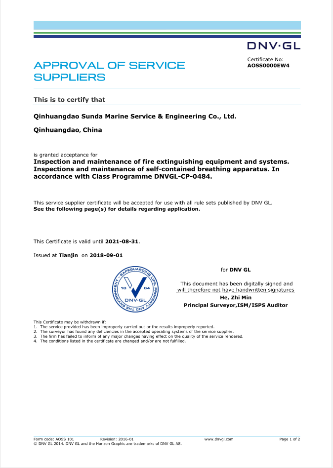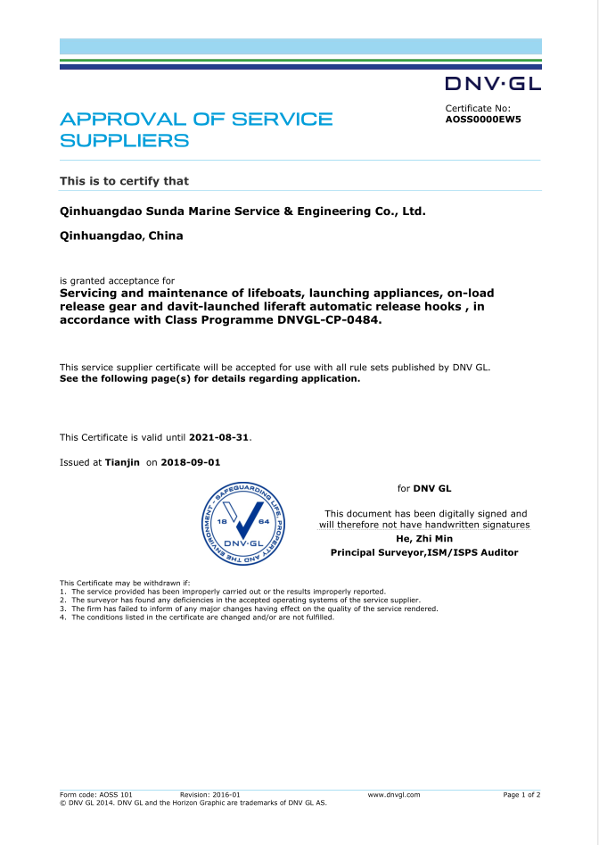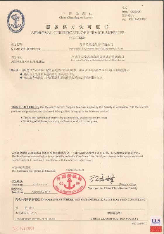 秦皇島順達船務(wù)有限公司位于美麗的海濱城市、中國北方著名的能源輸出大港--秦皇島。公司從事于船舶修理、物料供應(yīng)、水下檢測、船體測厚、消防救生設(shè)備及救生艇檢驗、電氣自動化修理等服務(wù)。 公司自1997年成立至今,先后為國內(nèi)外船東修理、檢驗各類船舶萬余艘,積累了豐富的施工經(jīng)驗。公司現(xiàn)有場地100余畝,員工30余人,以及工程用車若干臺。我們公司一直本著嚴(yán)以律己、真誠待人、精益求精、信譽至上的經(jīng)營理念,以優(yōu)質(zhì)的服務(wù)、專業(yè)的施工、合理的收費,得到了國內(nèi)外船東的廣泛認(rèn)可,贏得了良好的口碑和信譽。 公司已取得了中國船級社(CCS)、美國船級社(ABS)、日本船級社(NK)、德國船級社(DNV GL)等各個船級社的消防救生和救生艇檢驗資質(zhì), ...